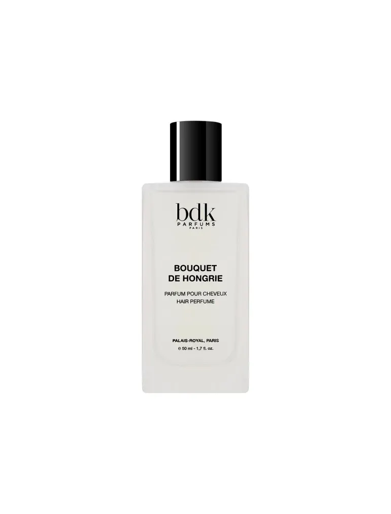 La composizione di Bouquet de Hongrie unisce la freschezza floreale della peonia e della rosa alle note fruttate del ribes nero, creando un’apertura vivace e delicata. Sul fondo, il muschio bianco, l’ambra leggera e il legno di cedro aggiungono profondità, offrendo un effetto avvolgente che rimane sui capelli con una delicatezza naturale.